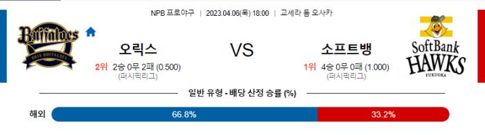 NPB분석 4월6일 NPB 오릭스 : 소프트뱅크