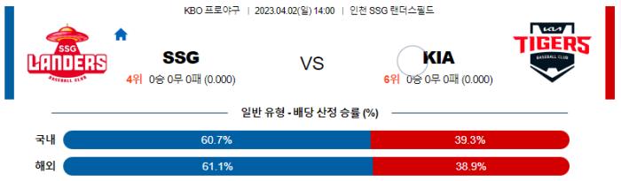 4월 2일 14:00 KBO SSG 랜더스 : KIA