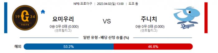 4월 2일 13:00 NPB 요미우리 : 주니치
