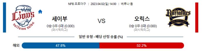4월 2일 14:00 NPB 세이부 : 오릭스