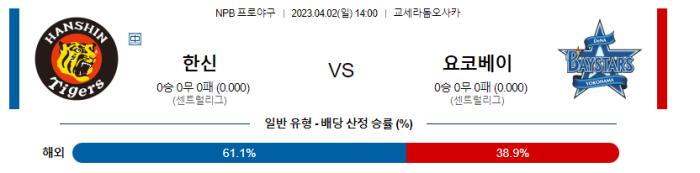 4월 2일 14:00 NPB 한신 : 요코하마