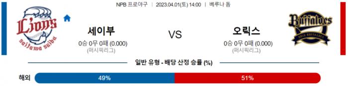 4월 1일 14:00 NPB 세이부 : 오릭스
