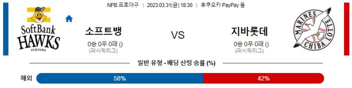 3월 31일 18:30 NPB 소프트뱅크 : 치바롯데