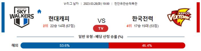 3월 28일 19:00 V-리그 남자 현대캐피탈 : 한국전력