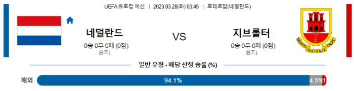 UEFA 유로컵 예선 3월 28일 03:45 네덜란드 : 지브롤터