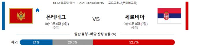 UEFA 유로컵 예선 3월 28일 03:45 몬테네그로 : 세르비아