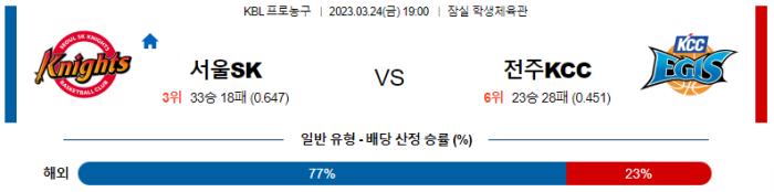 3월 24일 19:00 KBL 서울SK : 전주 KCC