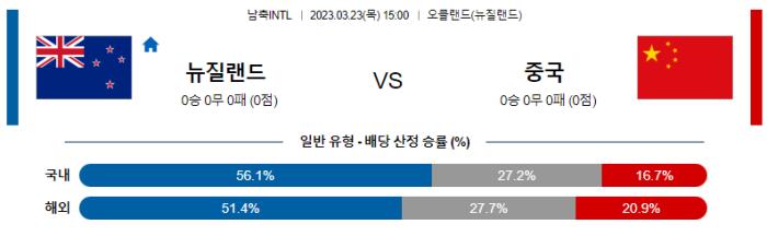국제친선경기 3월 23일 15:00 뉴질랜드 : 중국