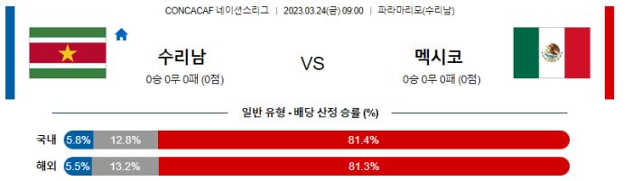 네이션스리그 예선 3월 24일 09:00 수리남 : 멕시코