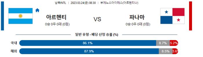 국제친선경기 3월 24일 09:00 아르헨티나 : 파나마
