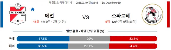 에레디비시 3월 19일 02:25 FC 에먼 : 스파르타 로테르담