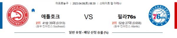 4월8일 NBA 애틀란타 필라델피아 해외농구분석 무료중계 스포츠분석
