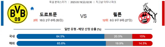분데스리가 3월 19일 02:30 보루시아 도르트문트 : FC 쾰른