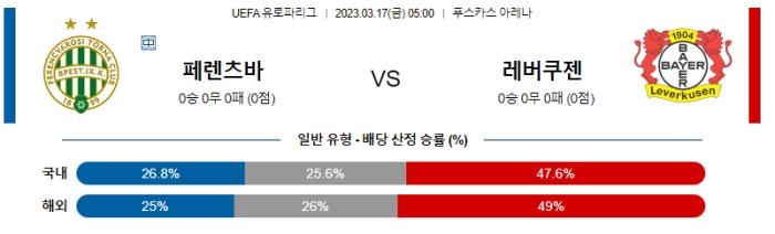 UEFA 유로파리그 3월 17일 05:00 페렌츠바로시 TC : 레버쿠젠