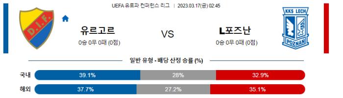 UEFA 유로파리그 3월 17일 02:45 유르고르덴 : 레흐 포즈난