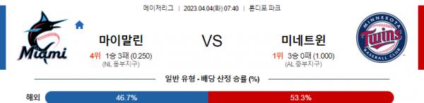 4월4일 MLB 마이애미 미네소타 해외야구분석 무료중계 스포츠분석