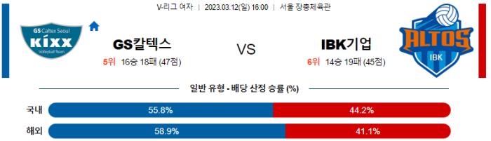 3월 12일 16:00 V-리그 여자 GS칼텍스 : IBK기업은행