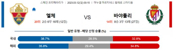 프리메라리가 3월 12일 00:15 엘체 CF : 레알 바야돌리드
