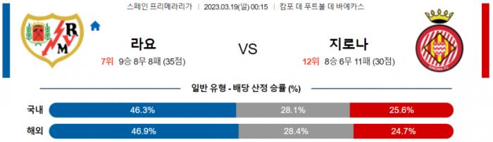 프리메라리가 3월 19일 00:15 라요 바예카노 : 지로나 FC