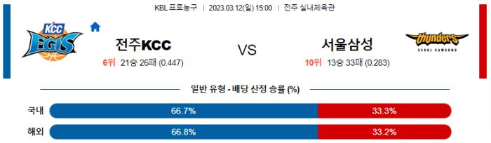 3월 12일 15:00 KBL 전주 KCC : 서울 삼성